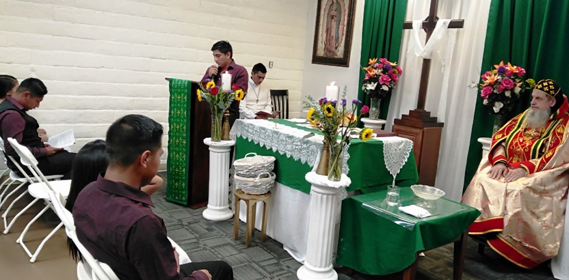 Después de la reunión de formación que se tuvo en la comunidad de Tojchiquel, el arzobispo, acompañado por el Padre José Luís, encargado del Centro Pastoral, concelebraron la Divina Liturgia.