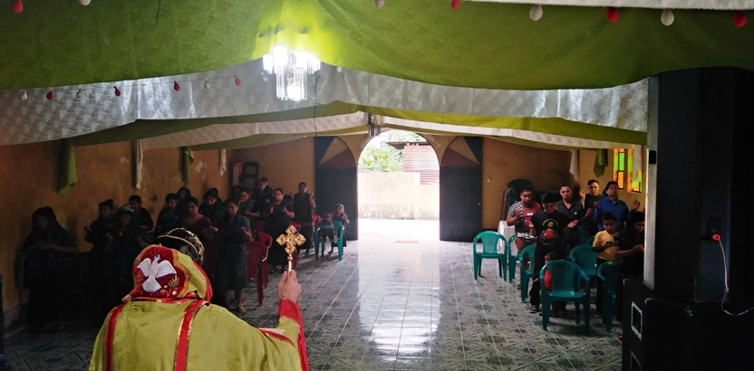 Finalmente, llegó hasta la sede de la comunidad Pentecostés de Santiago Atitlán, en donde celebró la santa misa para servidores y líderes de la comunidad. |