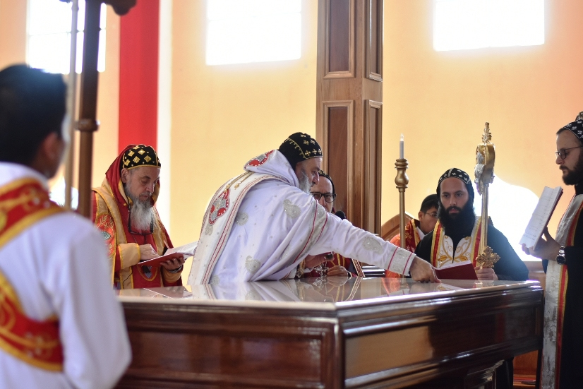Su Santidad, después de llegar a Chel, presidió la celebración de la Divina Liturgia en la que concelebraron los demás arzobispos, monjes y presbíteros.