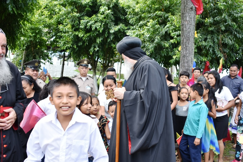 Después de la Santa Misa, los niños de la parroquia Espíritu Santo de Ahuachapán, presentaron a Su Santidad y a la comitiva patriarcal algunos recuerdos.