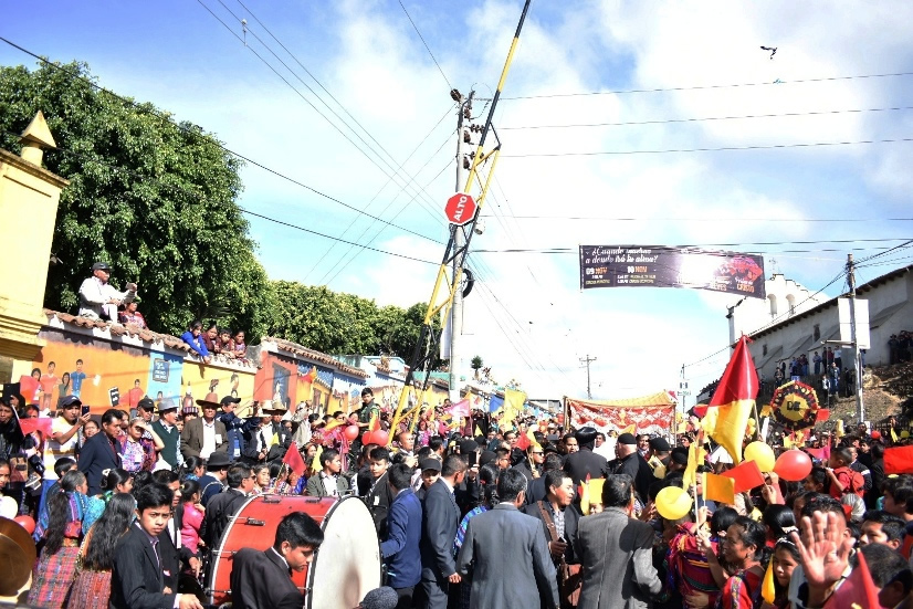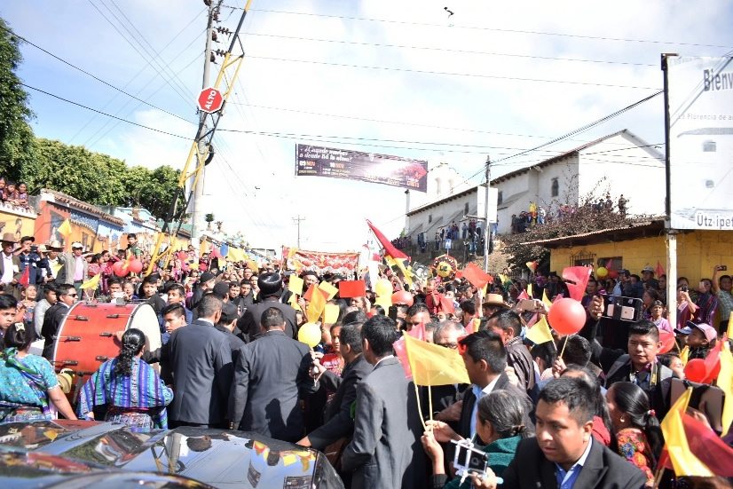 Al llegar a San Juan Comalapa, miles de fieles habían inundado la calle principal de entrada a la población, para dar la bienvenida a Su Santidad.