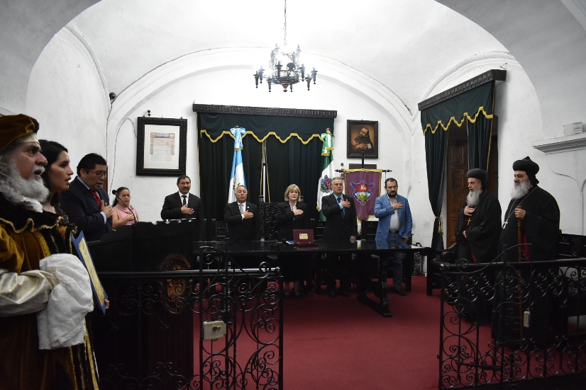 En el Ayuntamiento de la Antigua Guatemala, La Alcaldesa Municipal y el Concejo, celebraron una sesión extraordinaria en la que se otrogaron las llaves de la ciudad a Su Santidad y se le reconoció como Visitante Distinguido.