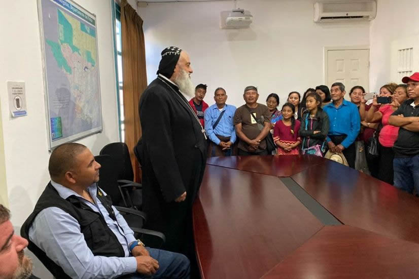 El gobernado de El Petén Licenciado Víctor Manuel Sigüenza, recibió a Su Santidad y a la comitiva patriarcal en el aeropuerto de Santa Elena, a su llegada a Petén.