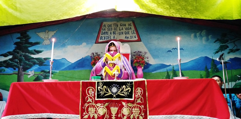Después de mediodía, el arzobispo llegó hasta el templo de la comunidad de Ixtiapoc de Soloma, Huehuetenango, para presidir la celebración de la santa misa.
