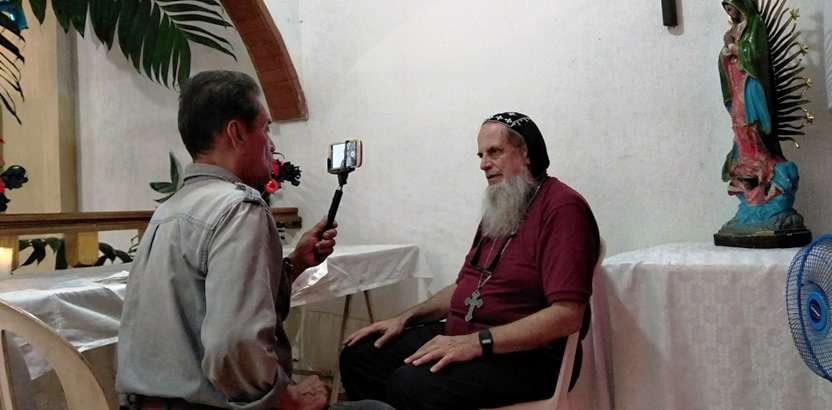 Después de todas las actividades, el arzobispo tuvo un breve encuentro con un reporter del canal de cable que transmite en la Costa Sur.