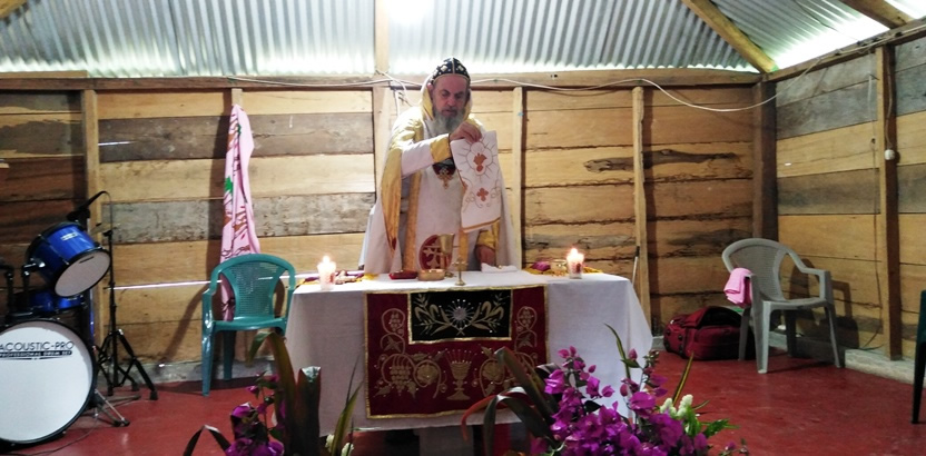 La víspera del Año Nuevo, el arzobispo, junto al Padre Francisco Pastrana, presidió la celebración de la Divina Liturgia de agradecimiento por la llegada del Año Nuevo, en la sede de la parroquia Renovación Carismática de Guaxacaná, Nentón, de Huehuetenango.