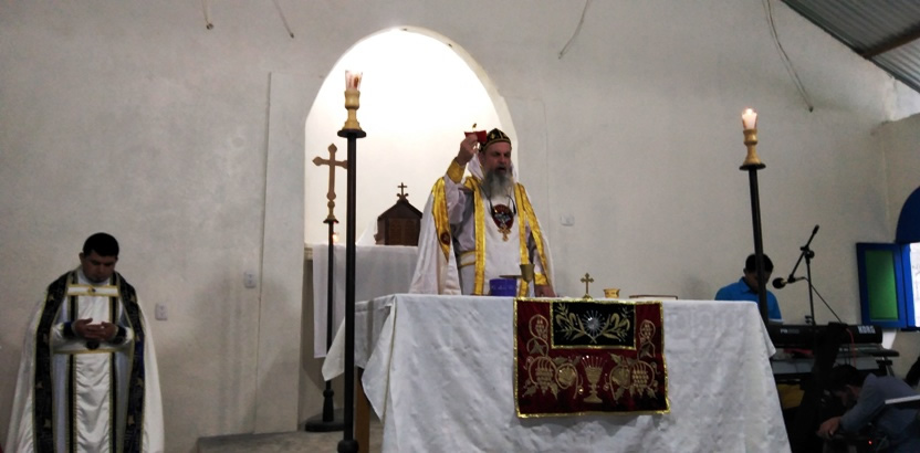 Después de ser recibido por los hermanos y de caminar hacia el nuevo templo que está siendo construido en una montaña, a la orilla de la comunidad, el arzobispo presidió la celebración de la Divina Liturgia.