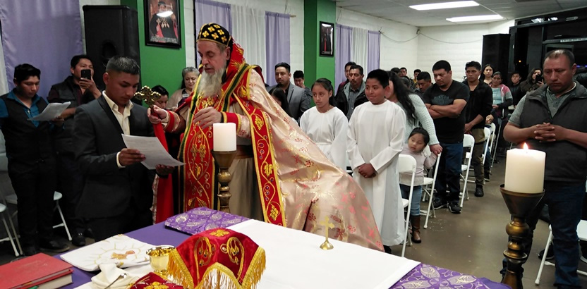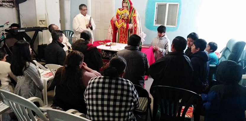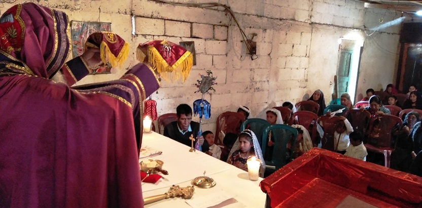 El arzobispo celebró la misa y administro los sacramentos de la iniciación cristiana a dos niños, hijos de miembros de la comunidad local.