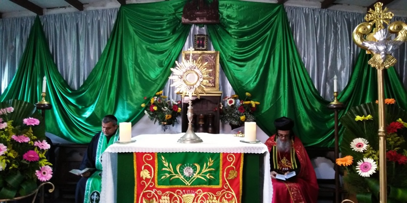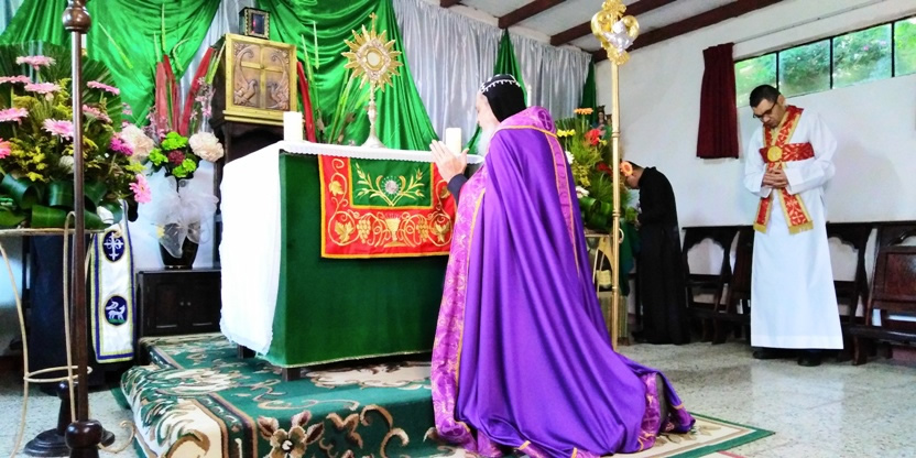 El miércoles 26, por la mañana, en el Seminario Santa María del Nuevo Éxodo, de San Lucas Sacatepéquez, Mor Santiago Eduardo presidió la adoración al Santísimo Sacramento y el canto del Oficio Divino.