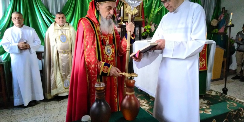 Dentro del marco de la celebración, el arzobispo hizo entrega a los presbíteros, del Santo Crisma, consagrado por Su Santidad el Patriarca junto a todo el Santo Sínodo, así como de los óleos de los catecúmenos y de los enfermos, que fueron bendecidos recientemente por el arzobispo.