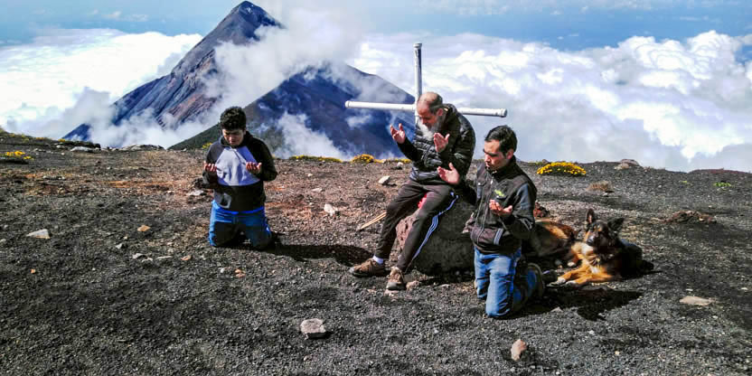 02: EL ARZOBISPO JUNTO A ALGUNOS SEMINARISTAS HACE PEREGRINACIÓN AL VOLCÁN DE ACATENANGO. |