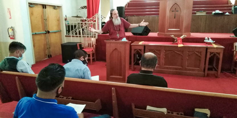 Después de la formación el arzobispo presidió la celebración de la divina liturgia para los hermanos que habían participado en la formación. Concelebraron los padres José Manuel y Antonio, encargados pastorales de la zona.