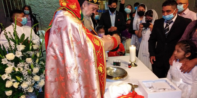 La divina liturgia se celebró en la casa de la familia Carías en San Bartolo Milpas Altas, en donde está residiendo actualmente doña Zoila.