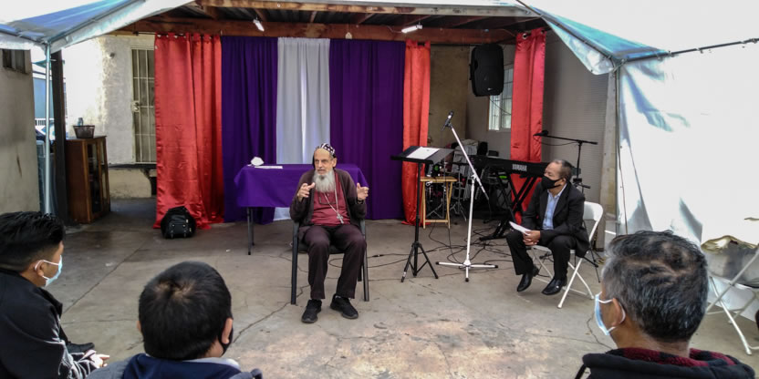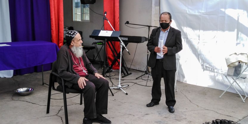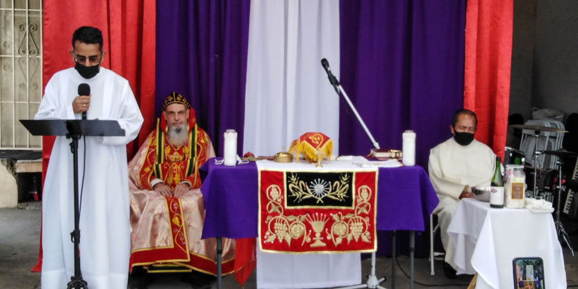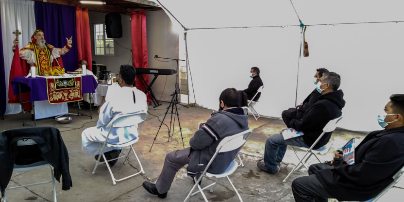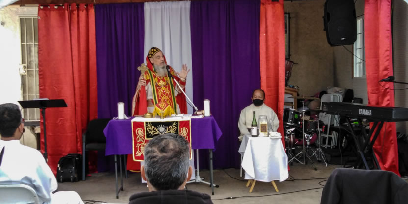 El domingo 13 de diciembre, en el patio posterior de la residencia del Hermanos Ronaldo, para cumplir con los requisitos sanitarios establecidos en California, el arzobispo presidió la celebración de la Divina Liturgia para servidores de las comunidades de la Parroquia de San Miguel Arcángel.