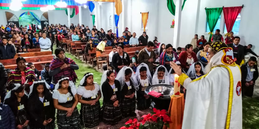 | 25: SANTA MISA EN LA PARROQUIA DE LA SANTÍSIMA TRINIDAD, USPANTÁN, EL QUICHÉ. |