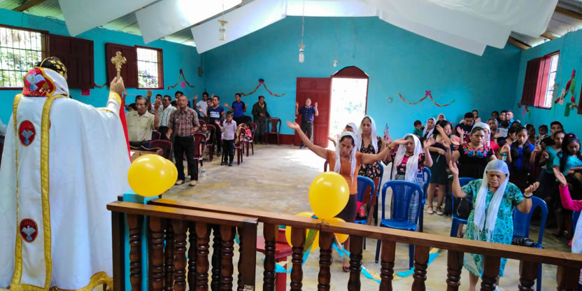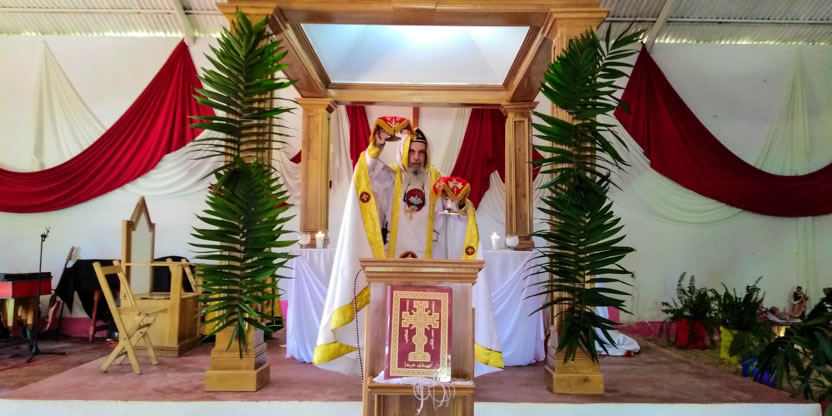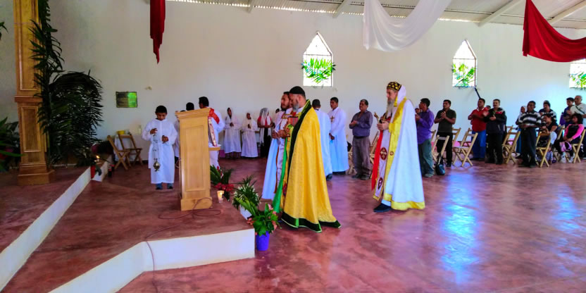 Después. de la bendición del altar y del ambón, el arzobispo presidió la celebración de la divina liturgia en el nuevo templo que han construido los hermanos, en un área contigua a donde se encontraba el primer templo, que era muy pequeño.