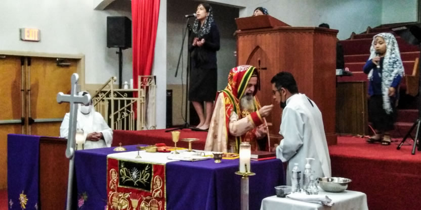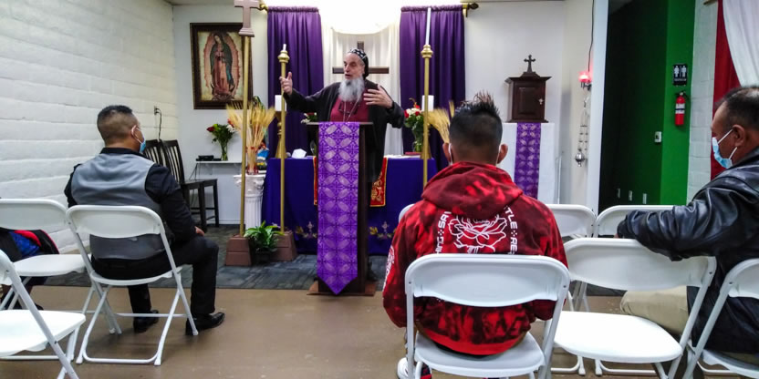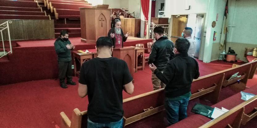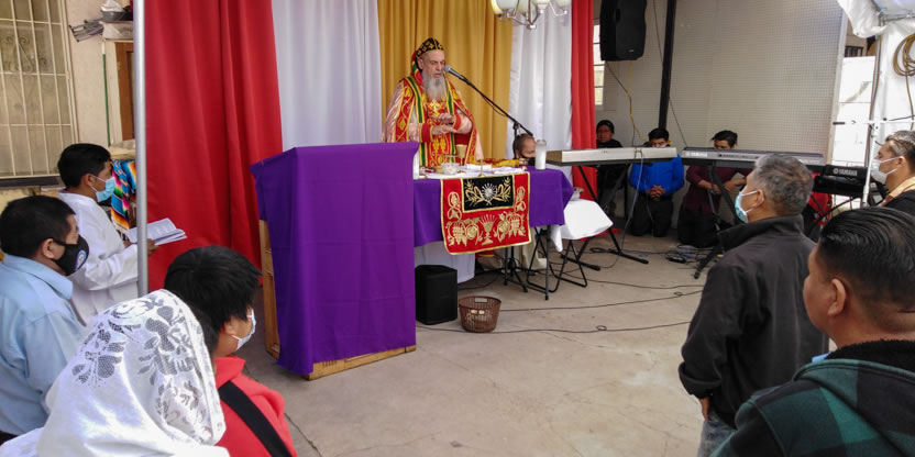 El jueves 18, por la noche, Mor Santiago Eduardo llegó hasta la sede de la Comunidad Ministerio el Pescador, de Los Ángeles, California, para presidir la celebración de la Divina Liturgia.