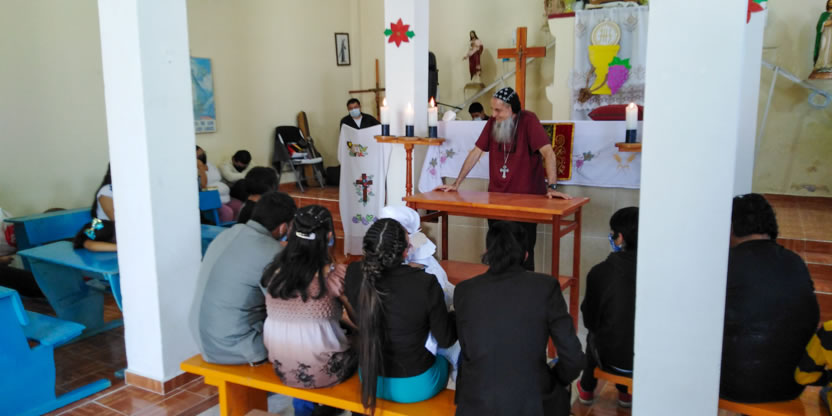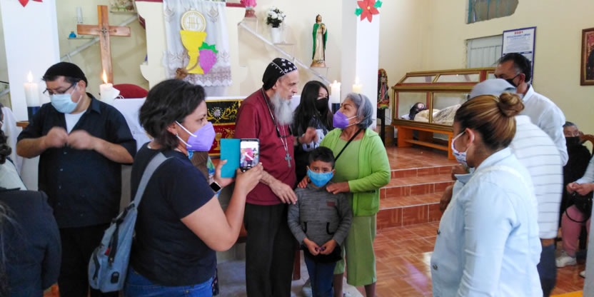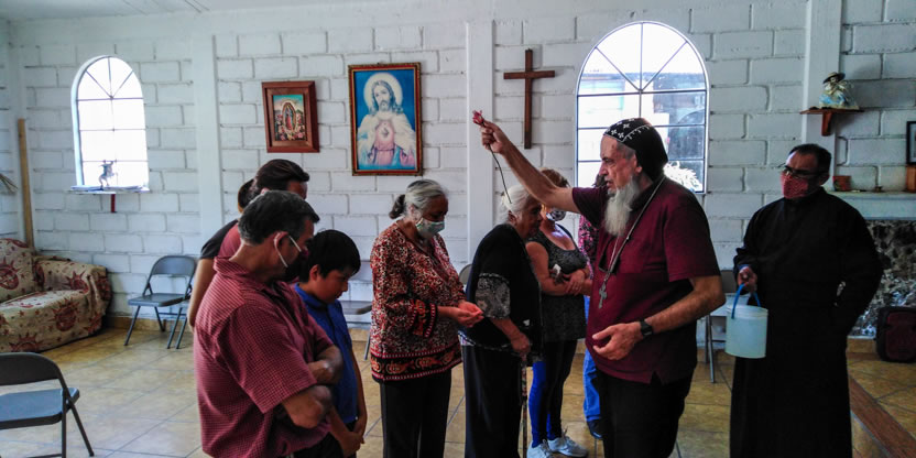 La visita a la comunidad comenzó con la celebración de la divina liturgia en la cual concelebraron los padres Mario López, encargado pastoral local y Vicario de la Vicaría del Centro de México y Dionisio Montiel.
