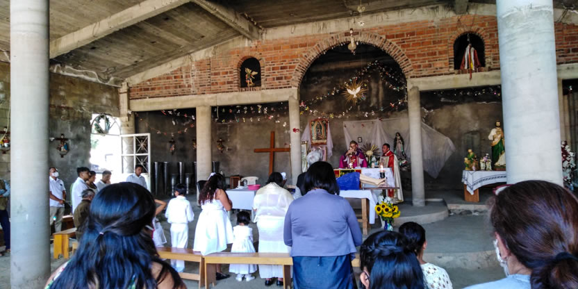 El domingo 28, por la tarde, el arzobispo, acompañado por el padre Mario y por el diácono Carlos, llegó hasta la sede de la parroquia de Santa María de los Lagos de Coyotepec.