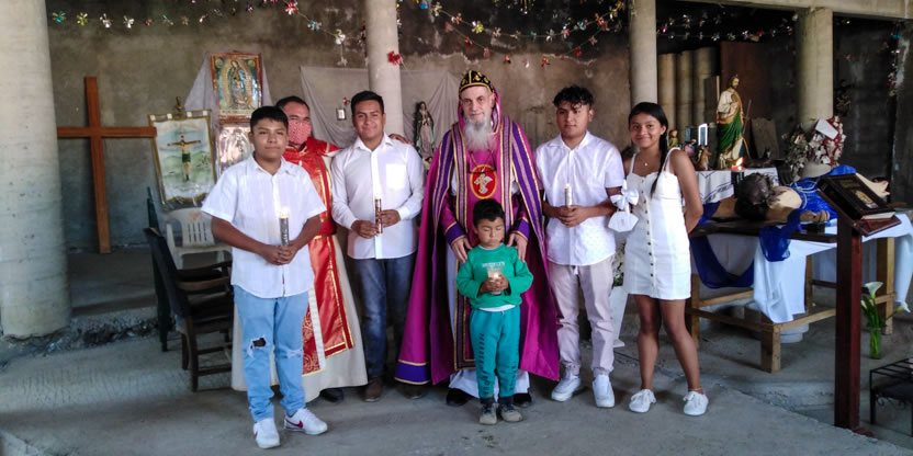 Dentro del marco de la visita al Ajusco, se preparó la celebración de los sacramentos de la iniciación cristiana a cinco hermano, el primero un anciano y los otros jóvenes y niños.