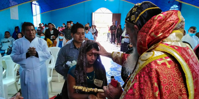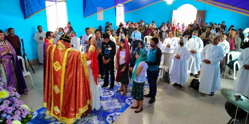 Dentro del marco de la celebración de la divina liturgia, el padre Santos, presentó a cuatro hermanos provenientes de la comunidad de San Andrés Huista, para que recibieran la confirmación y el envío misionero.