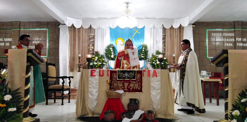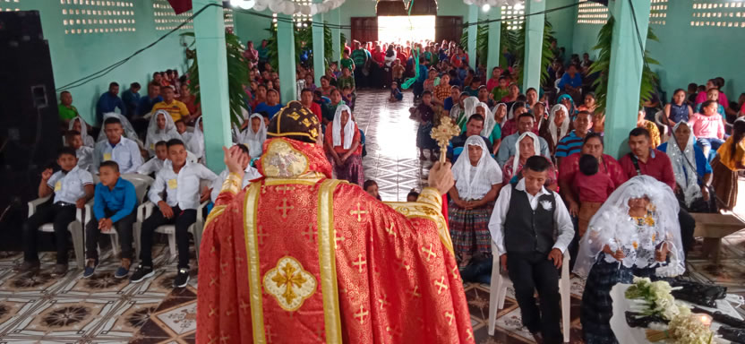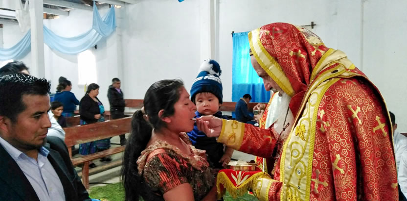 El domingo de resurrección, 4 de abril, el arzobispo llegó hasta la sede del Centro Pastoral de Chicamán, Las Anonas, Chicamán, para presidir la celebración de la divina liturgia con los hermanos.