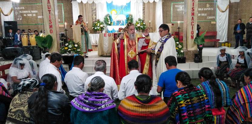 Después de ser saludado el arzobispo por los hermanos, presidió la celebración de la divina liturgia, para los hermanos de la comunidad de Zunil y de algunos de la comunidad de Mayaland.