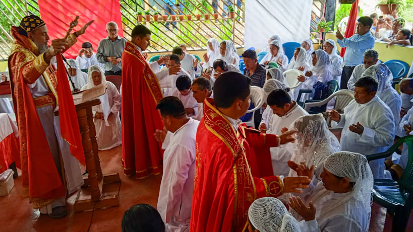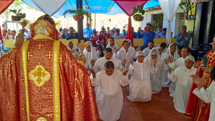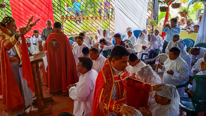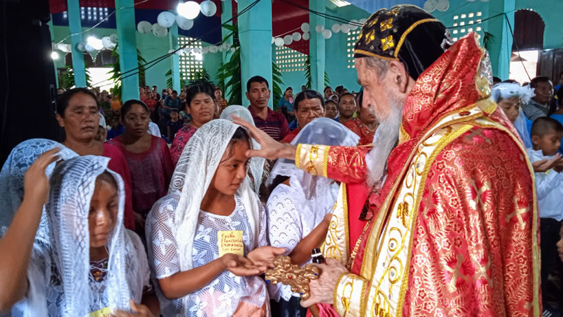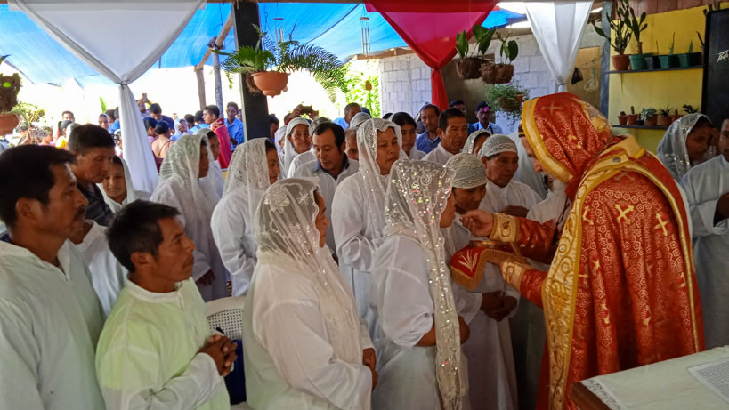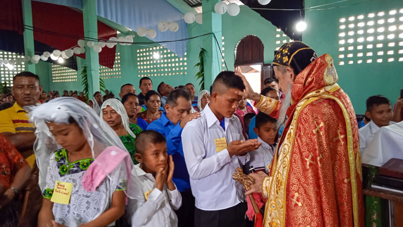 Dentro del marco de la celebración de la divina liturgia, se administró la confirmación y el envío misionero a veintidos hermanos. diecinueve, miembros de la comunidad local y tres de la comunidad de Mayaland.