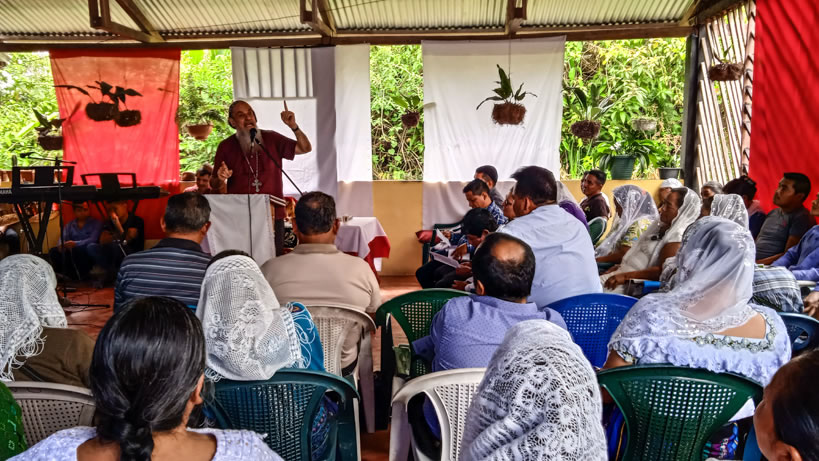 Los hermanos habían preparado un hermoso recibimiento al arzobispo, con ocasión de su tercera visita a la comunidad. El arzobispo, que iba acompañado por el padre Marco Antonio, párroco local, agradeció el recibimiento. |