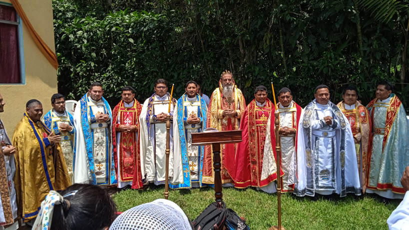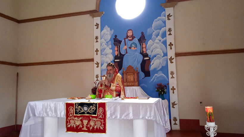 Hacia media mañana, el arzobispo presidió la celebración de la Divina Liturgia, en la que concelebraron los doce presbíteros que ejercen el ministerio en la vicaría del norte de Guatemala.