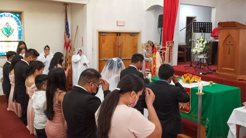 Dentro del marco de la celebración de la divina liturgia en la comunidad de El Pescador, el arzobispo celebró el matrimonio entre Samuel y Ana, después de haber tenido una esmerada preparación.