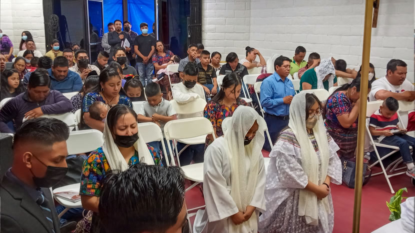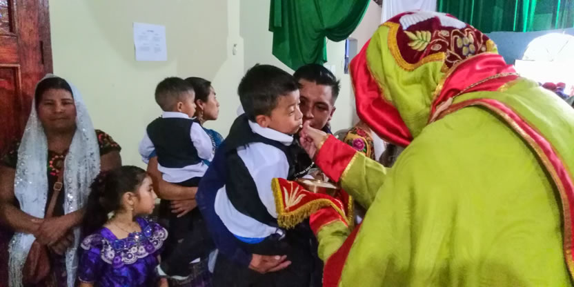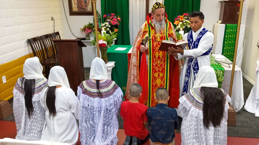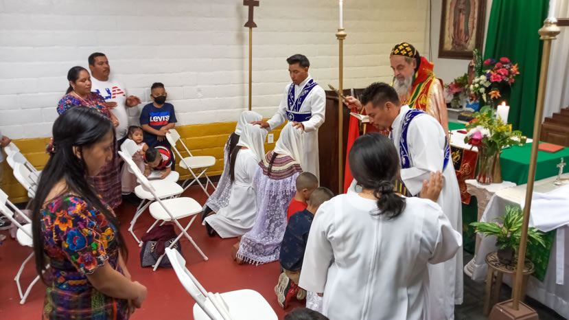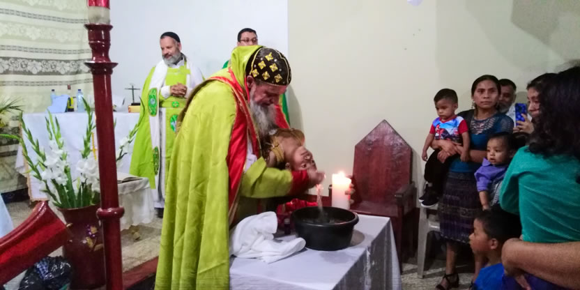 Dentro del marco de la celebración de la divina liturgia a Petatán, se administraron los sacramentos de la iniciación cristiana a ocho hermanos, siete niños y una adulta, madre de dos de las niñas bautizadas.