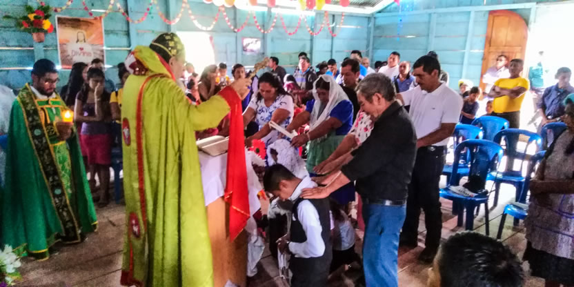 Dentro del marco de la celebración de la divina liturgia, el arzobispo oró y bendijo a los hermanos de la comunidad de Sotzil, implorando al Señor que, llenos del Espíritu Santo puedan vivir y dar testimonio de la fe.