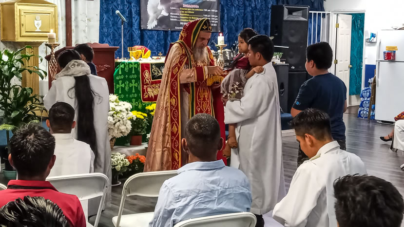 Dentro del marco de la celebración de la divina liturgia, se administraron los sacramentos del bautismo, la crismación y la comunión a ocho niños.