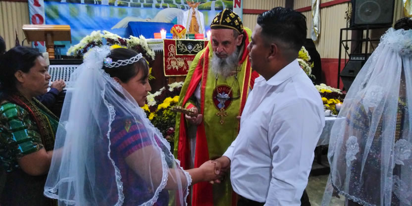Dentro del marco de la visita a la comunidad Unción del Espíritu Santo, se celebraron dos matrimonios: Salvador contrajo matrimonio con Luisa Elizabeth y Diego con Dolores. En el caso de Diego y Dolores, ellos se incorporaron a la iglesia hace algunos meses. En primer lugar presentaron a sus hijos para que recibieran los sacramentos de la iniciación cristiana y, en esta ocasión, decidieron contraer matrimonio.