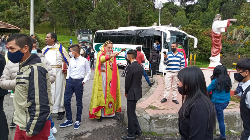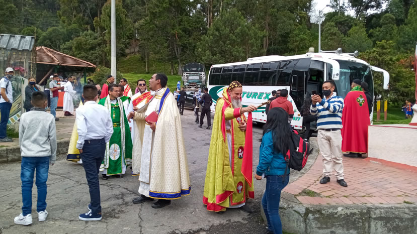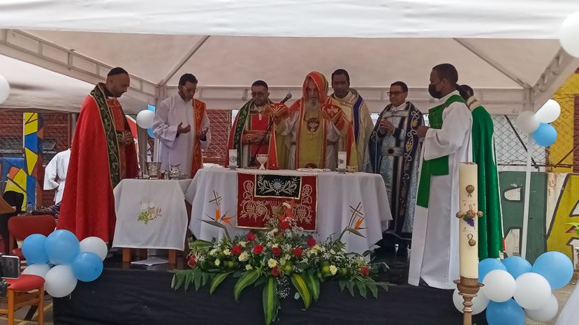 Apenas llegados a la cancha deportiva de la comunidad Bosques de Calderón, inició la celebración de la divina liturgia, presidida por el arzobispo y en la que concelebraron los presbíteros de la vicaría de Colombia.
