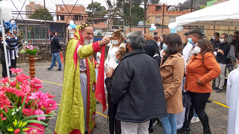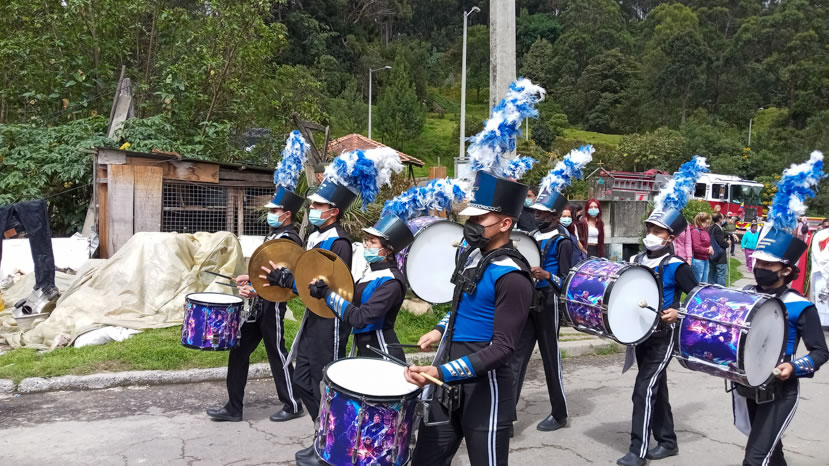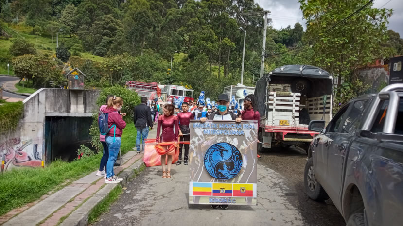 En la caravana que acompañaría el ingreso del arzobispo y los presbíteros a la comunidad Bosques Calderón, también participó la banda de guerra y el grupo de danza de un colegio ubicado en el sur de Bogotá que también es atendido espiritualmente por los padres de la vicaría que ejercen su ministerio en esa zona.