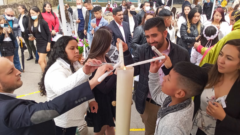 Desde el ingreso de la comunidad, numerosos hermanos, procedentes de Bosques de Calderón, así como de otros sectores de Bogotá, se dieron cita para saludar al arzobispo y a los presbíteros. |