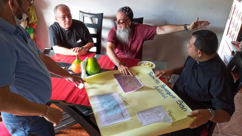 Después de la llegada, el arzobispo tuvo como primera actividad la revisión de los planos que el arquitecto que está ayudando al Padre Ricardo había preprado.