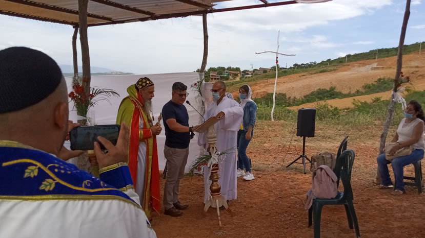 Después de ver las diversas posibilidades y contando con la generosidad del propietario del terreno, se determinó que el área a utilizarse se ubicará precisamente en donde se hizo la celebración de la divina liturgia y se hizo la bendición del lugar. |