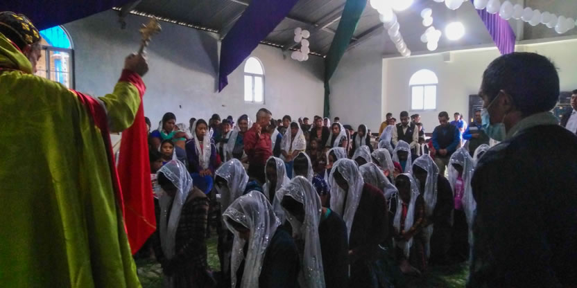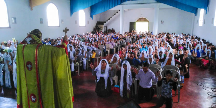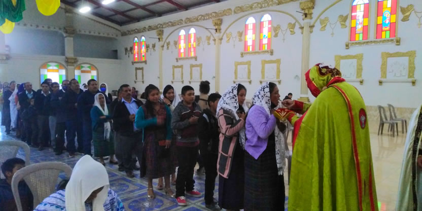 Dentro del marco de la celebración de la divina liturgia, se administró la confirmación y el envío misionero a veinte hermanas, miembros de la comunidad de Santo Domingo Guaixná.