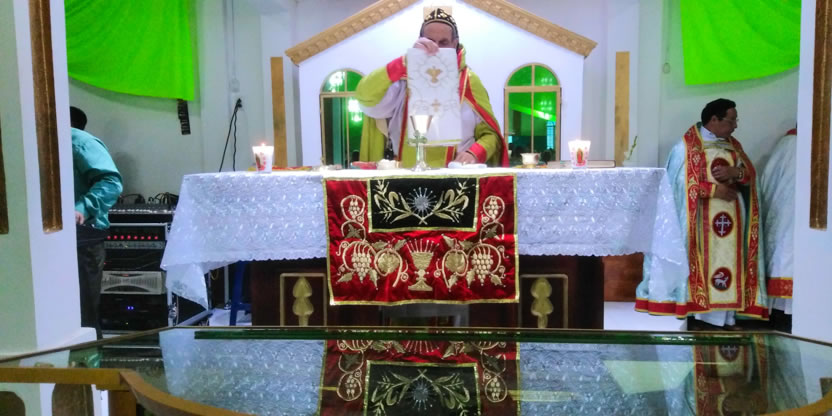 Después de la bendición del templo, el arzobispo presidió la celebración de la divina liturgia para los miembros de la comunidad de Santo Domingo Guaixná.