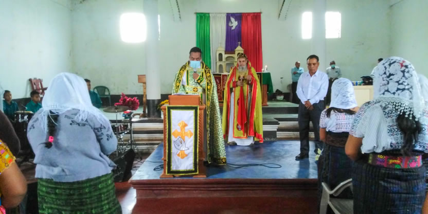 El martes 26 de octubre, por la mañana, el arzobispo llegó hasta la comunidad de Racaná, del Centro Pastoral de Santa María Chiquimula, Totonicapán, acompañado del Padre Santo, Encargado Pastoral y del diácono Lorenzo, asistente del arzobispo, para celebrar la divina liturgia.