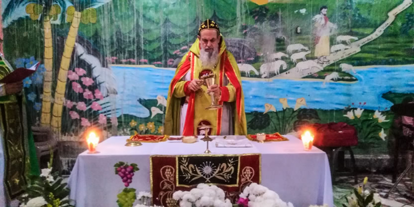 Hacia el mediodía, el arzobispo presidió la celebración de la divina liturgia, en la cual concelebraron los padres Norvin y José Bailiner y participaron los hermanos que habían asistido al decanato de la zona.