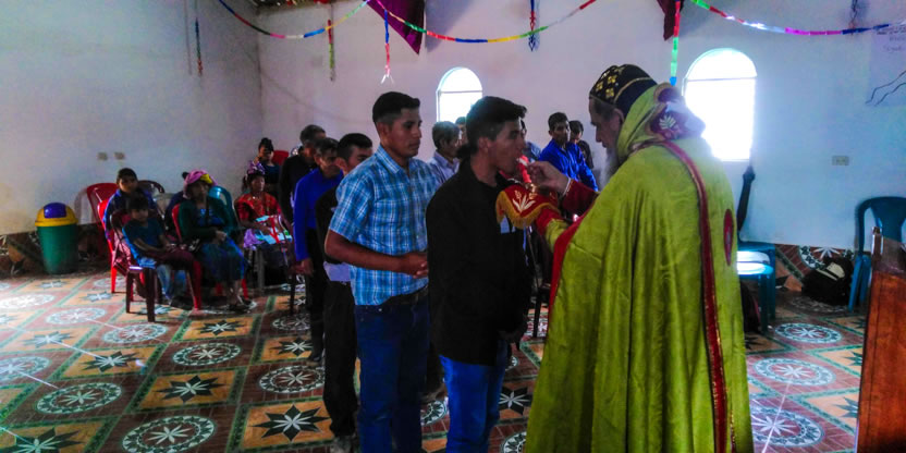 Dentro del marco de la celebración de la divina liturgia, se administró la confirmación y el envío misionero a los hermanos Engracia, Miguel, Catarina, Andrés, Baltazar y Cristóbal.