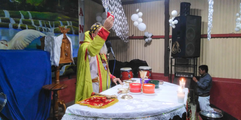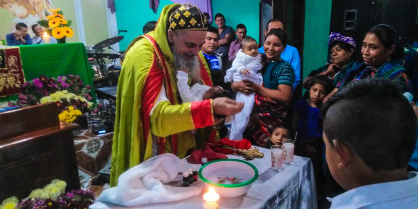 Dentro del marco de la celebración de la divina liturgia, se administraron los sacramentos del bautismo, la crismación y la comunión a la niña Petrona Yolanda.