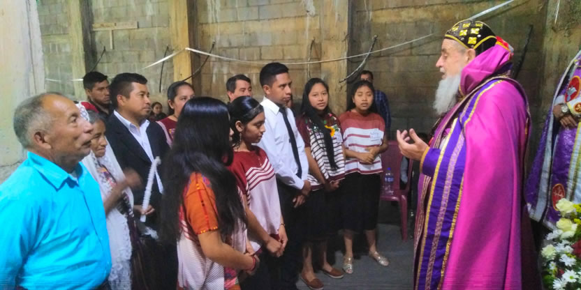 El lunes 29 de noviembre, por la mañana, el arzobispo llegó hasta la cima de los Cuchumatanes en donde, en el patio de una escuela del Municipio de Santiago Chimaltenango, se habían congregado los miembros de la comunidad local, para tener la celebración de la divina liturgia con el arzobispo.