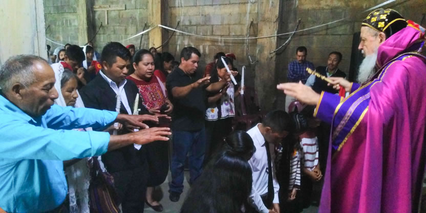 El domingo 28, por la tarde, el arzobispo llegó hasta la sede de la parroquia Espíritu Santo de Los Guates, San Juan Sacatepéquez, para presidir la celebración de la divina liturgia. Le acompaño el Padre Orlando López, párroco local.