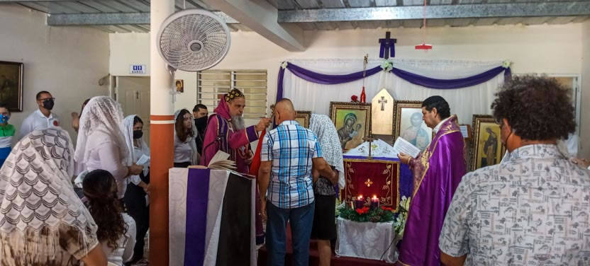 Estaba participando una familia que, durante su estadía en California, se unió a la iglesia ortodoxa etíope, hermana de nuestra iglesia, y que actualmente ha regresado a vivir en Puerto Rico. También se contó con la participación de un hermano ortodoxo ruso miembro de la parroquia de San Espiridión. |