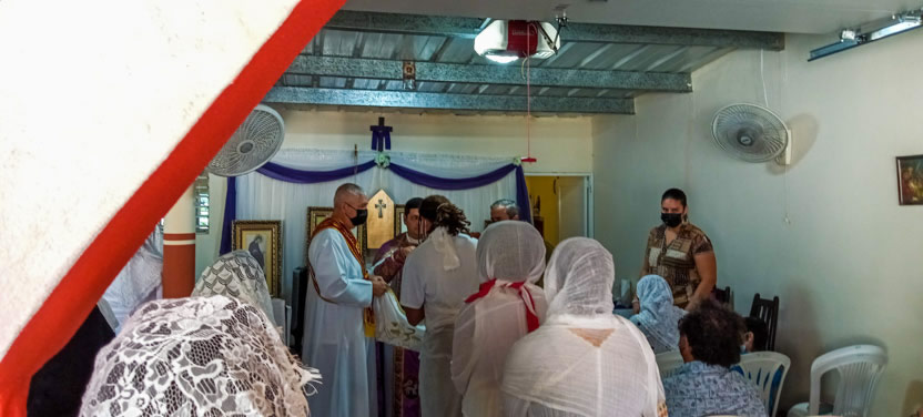 Después de la celebración de la Liturgia de la Palabra Profética, se continuó con la celebración de la Anáfora. El arzobispo explicó a los hermanos que el sentido profundo del misterio que se celebra es la continuación del misterio de la Encarnación de la Palabra viva de Dios, que comunica la vida eterna.